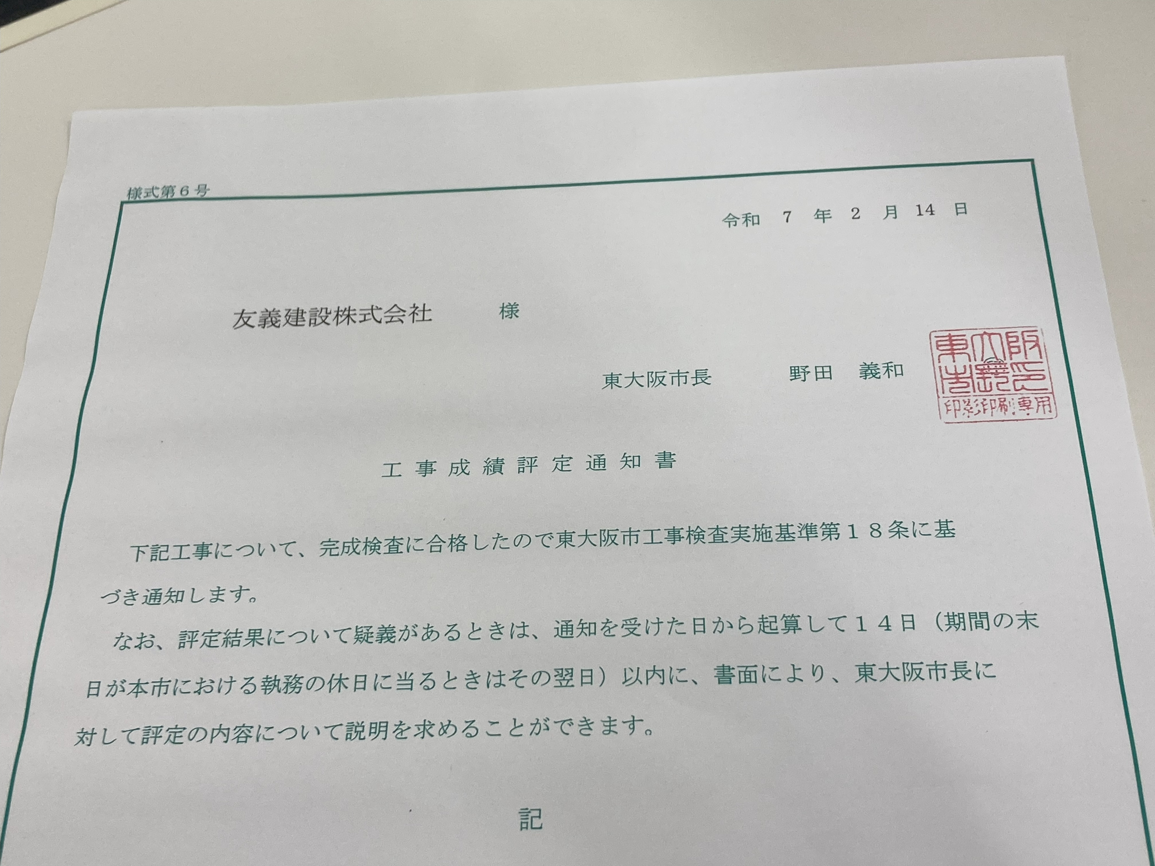 そこで市役所の方から工事成績評定通知書を頂き、綺麗に施工していただきありがとうございました!点数もかなりいいですよicon_mrgreen.gif
