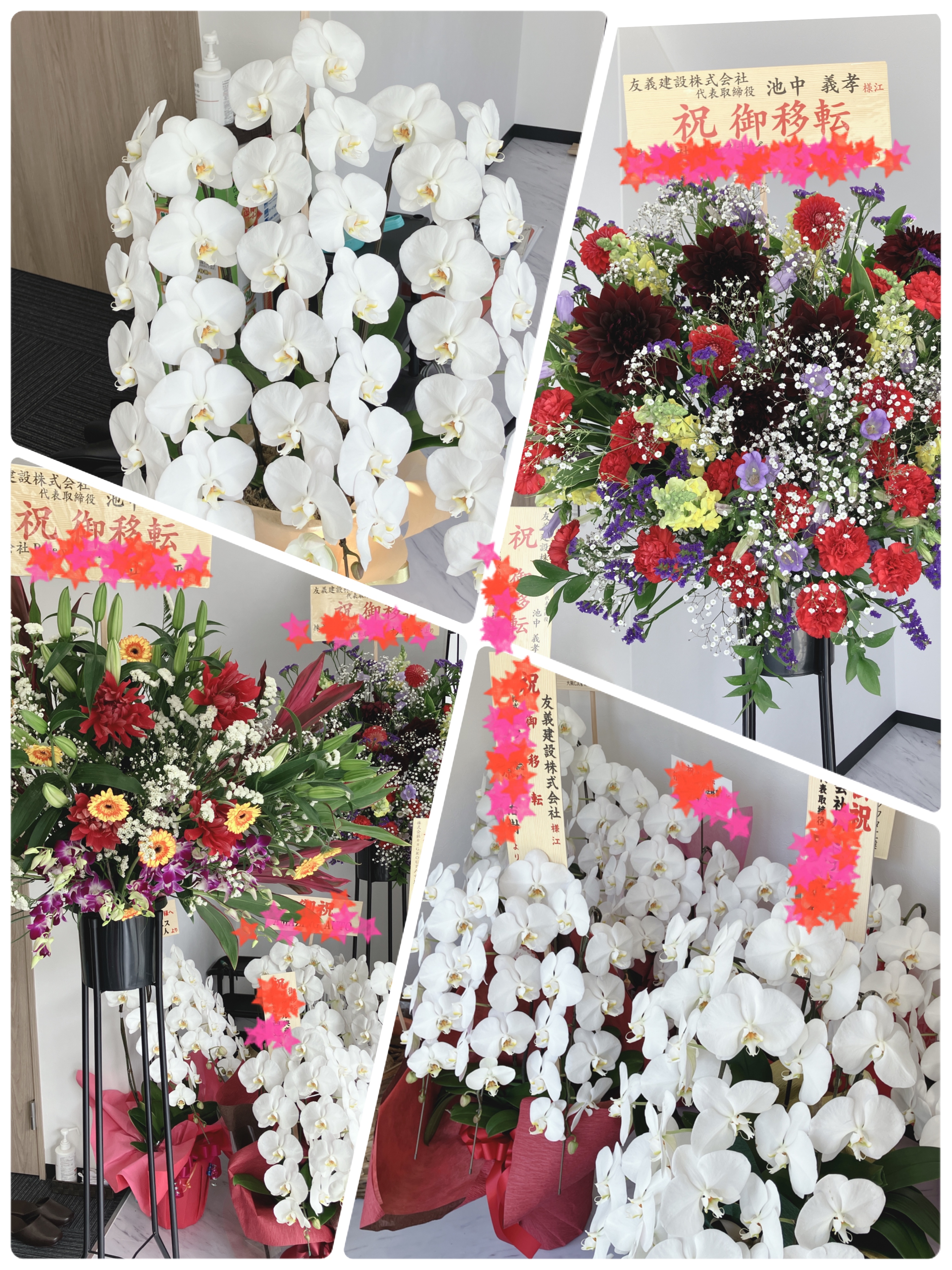 協力業者様方からも祝花もたくさん頂戴いたしまして、